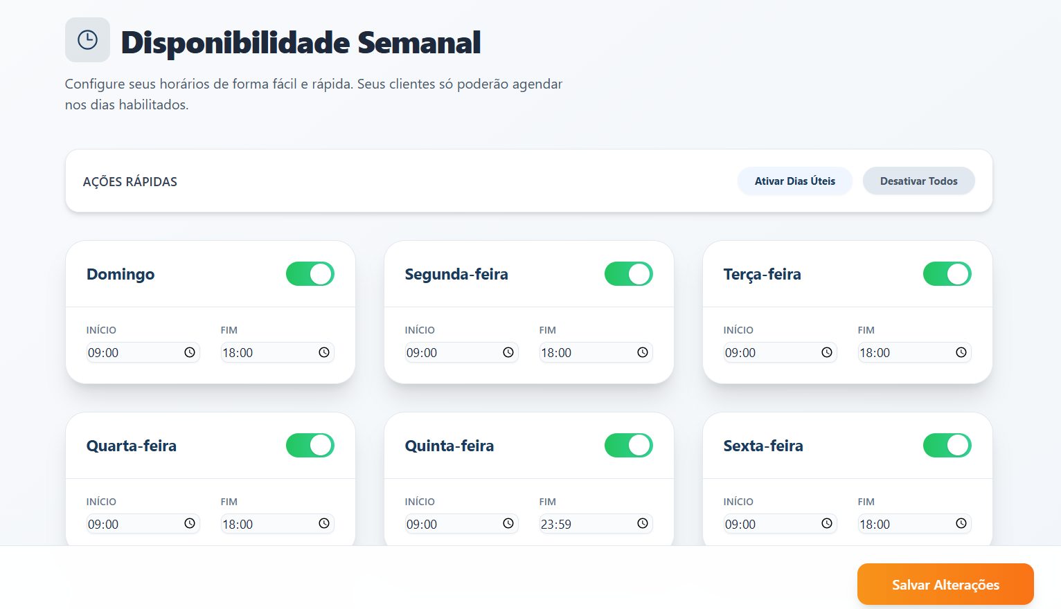 Defina horários e receba agendamentos automáticos 24h por dia.